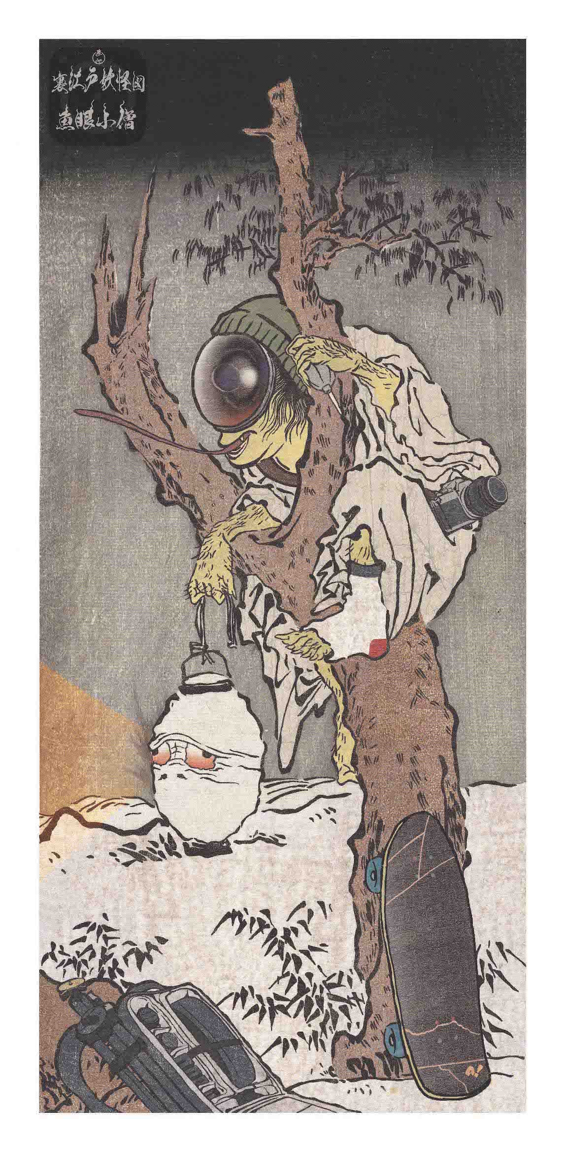 This work is based on the motif of the famous Hitotsume-kozo (one-eyed boy), which is almost synonymous with yokai. It is a very unique idea in that the boy's eye is a fisheye lens.