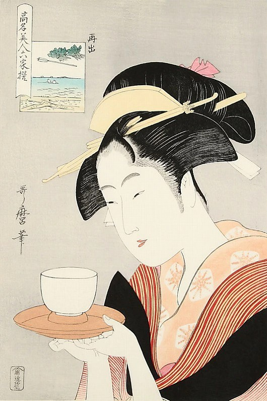 This work is based on a painting of a famous Edo beauty named Naniwa-ya 'Okita', one of Utamaro's six most famous beauties.